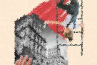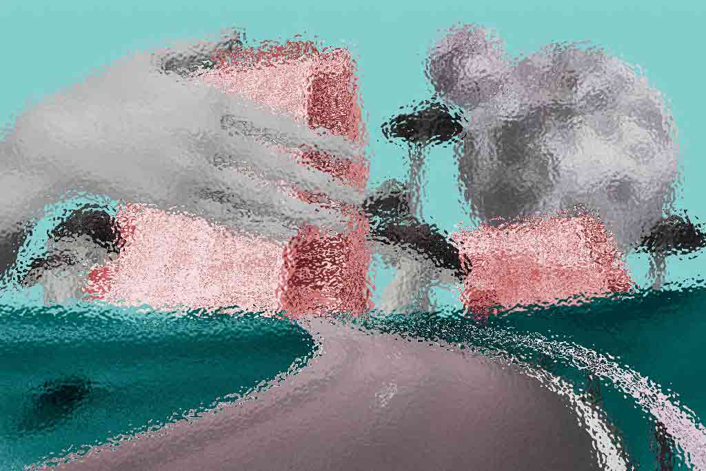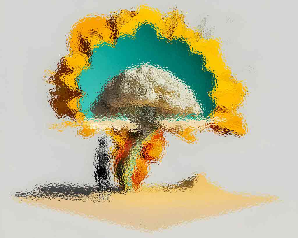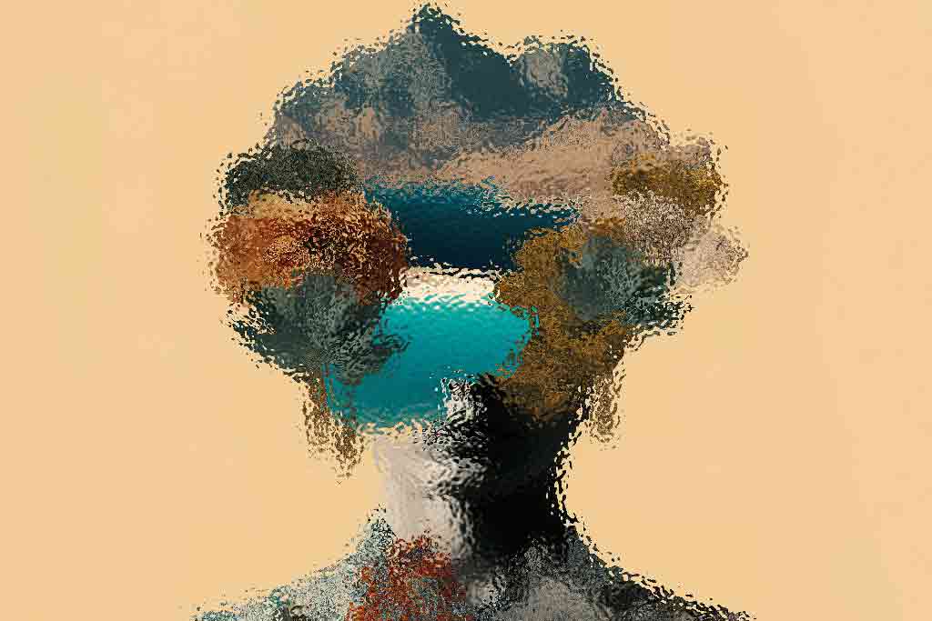 Abstract art, collage with female portrait and mountains, generative ai