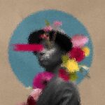Abstract art, collage with female portrait and mountains, generative ai