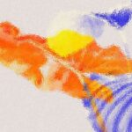 Abstract art, collage with female portrait and mountains, generative ai