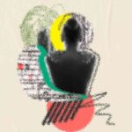 Abstract art, collage with female portrait and mountains, generative ai